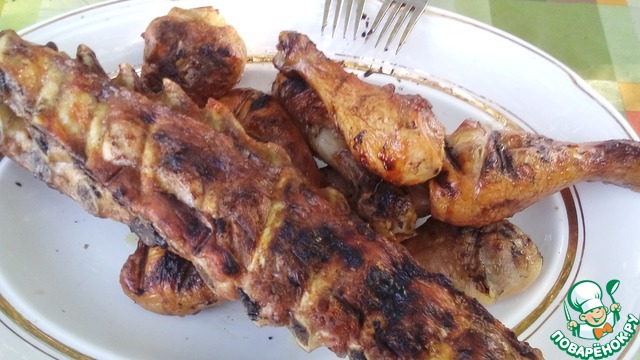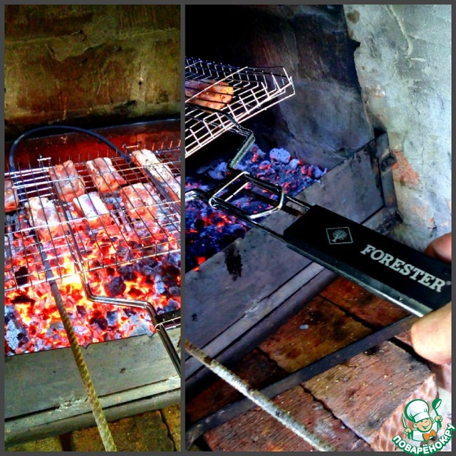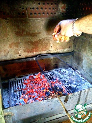 Затем посыпать размоченной щепой горячие угли. Жарить ребрышки еще 10-15 минут.