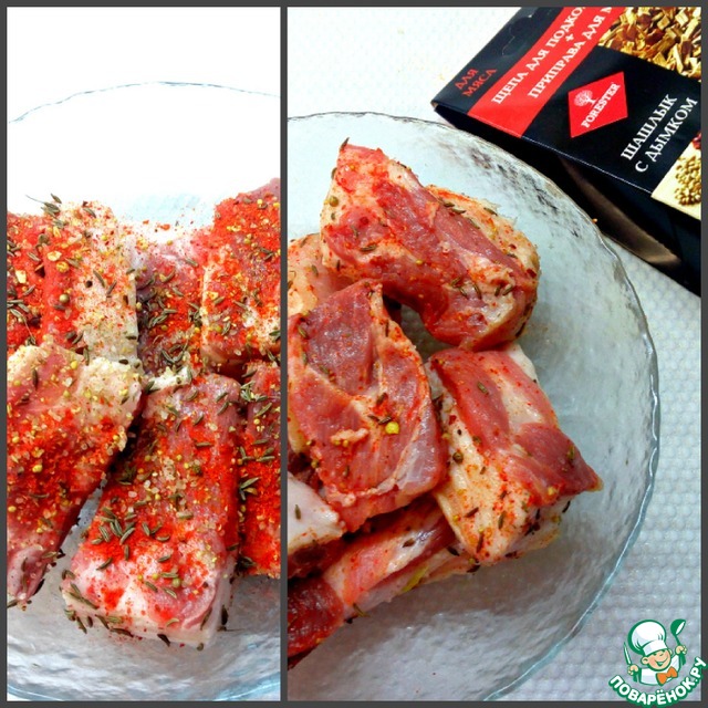 Я использую приправу для мяса - для шашлыка с дымком. В набор входят специи для мяса и отдельно пакетик с щепой из бука и ольхи. -