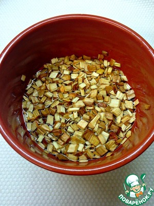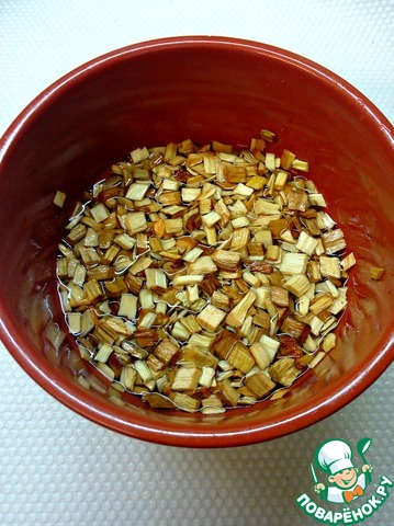 Щепу высыпать в миску и залить водой. Оставить на 30 минут.