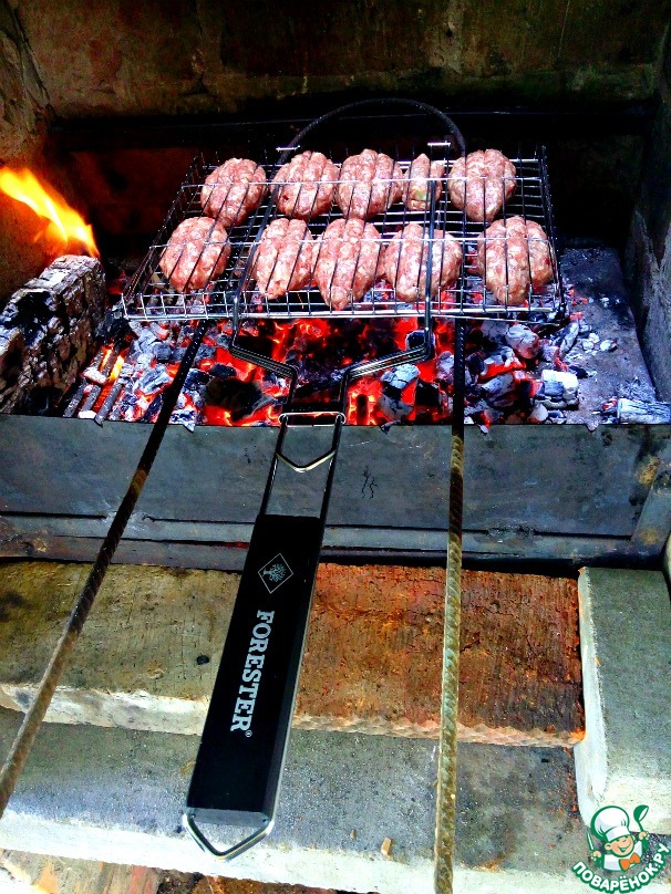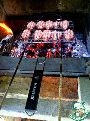 Решетку смазываем растительным маслом и выкладываем зразы. Жарим над горячими углями 15-20 минут, до готовности.