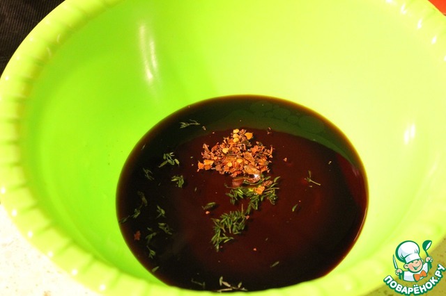 Смешать все ингредиенты для маринада.