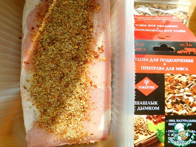 А маринад выбирала я и это набор ТМ FORESTER, в который входит сухая гриль-приправа и щепа для подкопчения мяса. -