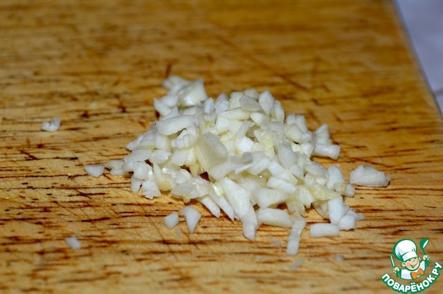 Чеснок измельчаем.