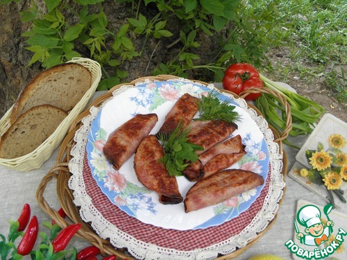 Если рулетики немного раскрутятся, ничего страшного, решеткой все прижмется ( они совсем не раскручиваются, только когда еще верх обертываешь в бекон)