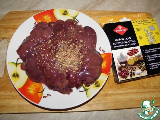 Печень подготовить, очистить от прожилок. Добавить специи FORESTER.