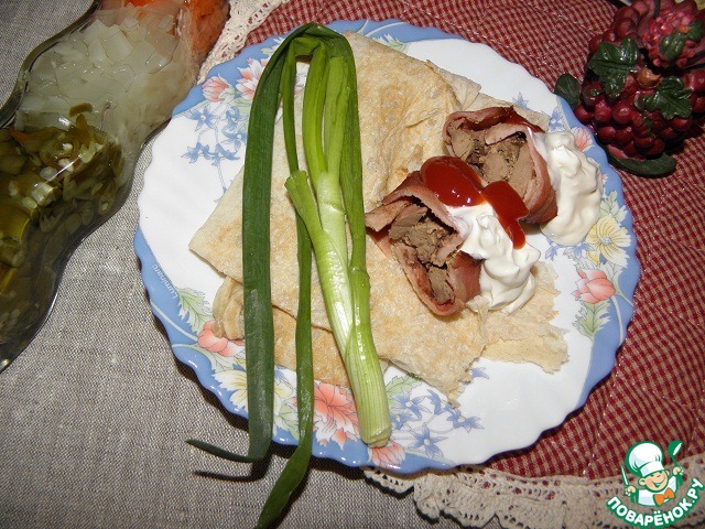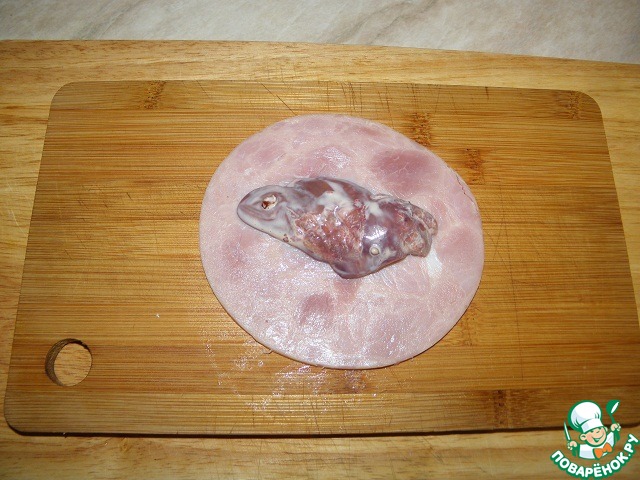 Рецепт «Печень в ветчине "К открытию сезона"»:
