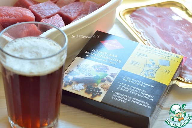 Залить мясо холодным пивом и оставить на 2 часа мариноваться, иногда перемешивая его;