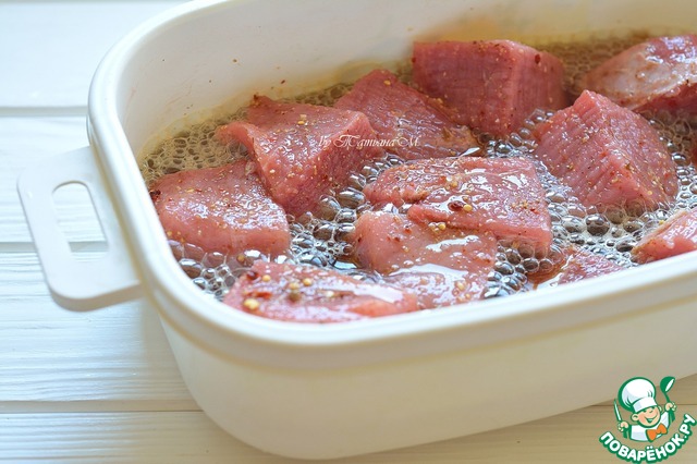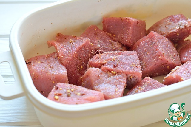 Мясо посыпать специями, помассировать и оставить на 1 час;