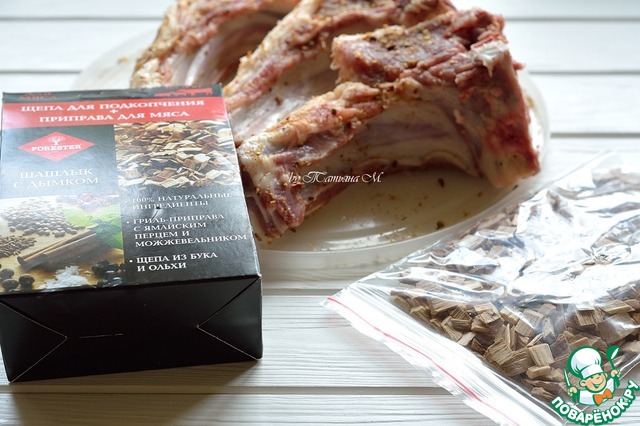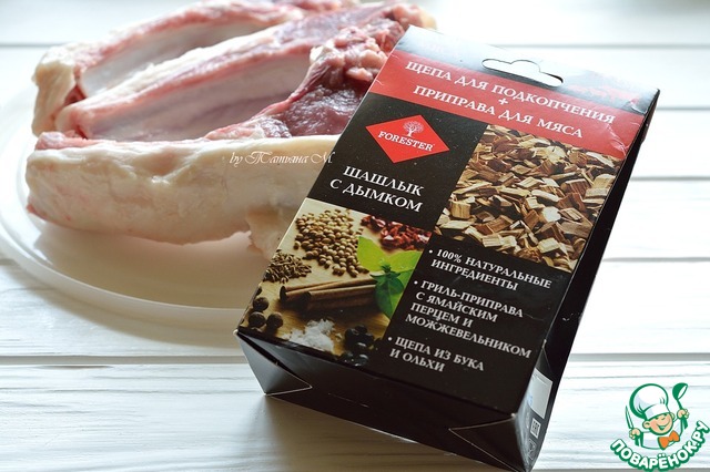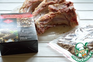 - Маринад (к мясу с щепой ТМ Forester (морская соль, чеснок, кориандр, паприка, горчица, корица, майоран, можжевел. ягода, ямайский перец, зира, черный перец)) — 1 ст. л.