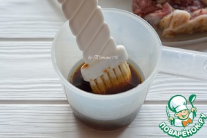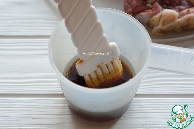 Соевый соус смешать с сиропом шиповника и маслом, хорошо промазать ребра со всех сторон перед жаркой;