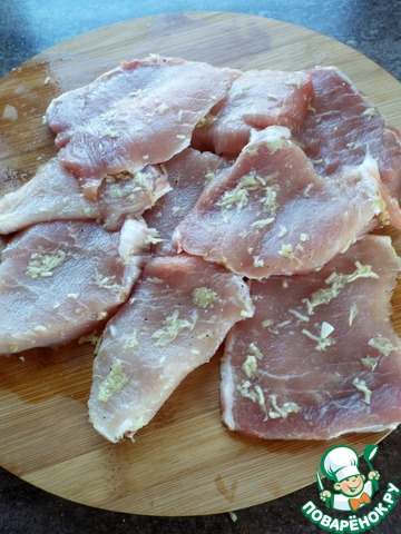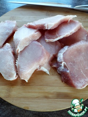 Корейку вымыть, обсушить салфеткой, нарезать на тонкие медальоны.