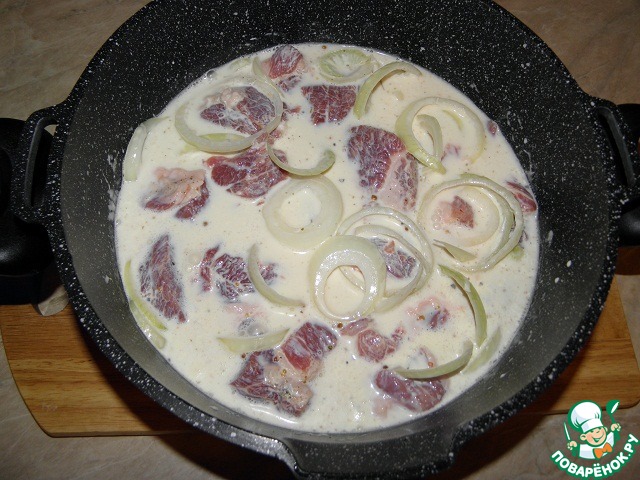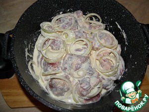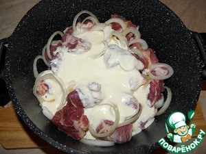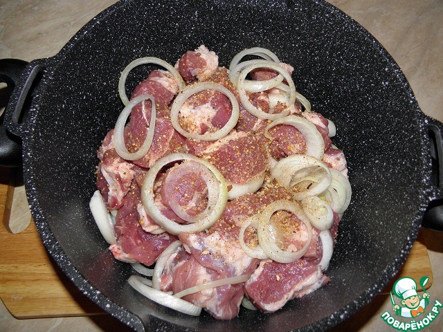 Лук нарезать кольцами, или полукольцами, добавить к мясу. Добавить по вкусу специи FOPESTER.