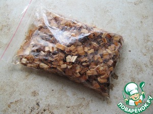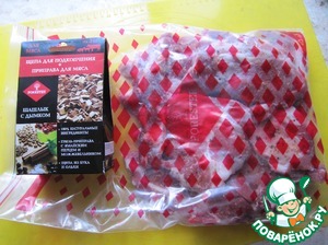 Щепу залить на 30 минут в пакете водой, затем лишнюю воду слить.