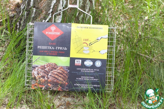 Для приготовления мяса на мангале используем решетку-гриль от Форестер. Порадовала удобная для обхвата ручка, которая предохраняет руки от ожогов и помогает легко переворачивать решетку, а усики-фиксаторы обеспечивают устойчивое положение на мангале.