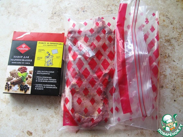 В набор для маринования входит удобный пакет с двойным zip-замком. Подготовленное мясо сложить в пакет, влить пару столовых ложек вина (по желанию), аккуратно встряхнуть, чтобы жидкость равномерно распределилась внутри пакета, и оставить в прохладном месте на 3-4 часа. За это время ягоды и приправы отдадут свой аромат мясу, оно хорошенько замаринуется.