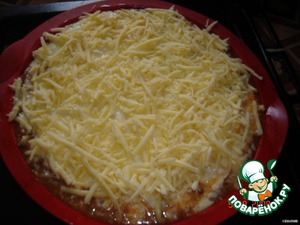 Натираем сыр и наносим его на верхний слой соуса. -
