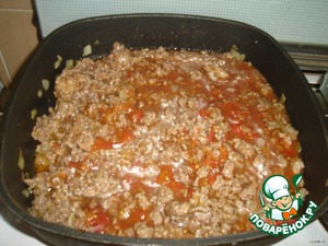На соус выкладываем фарш.