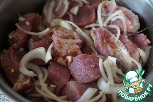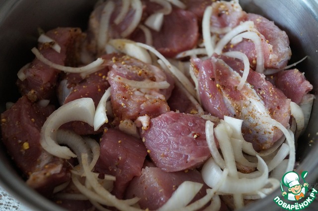 Добавить горчицу и хорошо перемешать. Оставить мариноваться шашлык не менее 2-х часов.