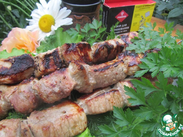 Хочу предложить вашему вниманию шашлычок в очень необычном маринаде. Домашний хлебный квас, горчица и набор специй для маринования мяса от Форестер. Результат превосходный! Попробуйте обязательно!
