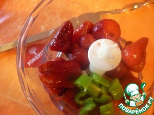 Для соуса взбить клубнику с перцем чили (очищенным от семян и перегородок),..