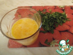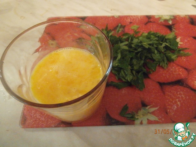 Яйца взбиваем в стакан (тарелку), слегка взбиваем вилкой, режем петрушку.