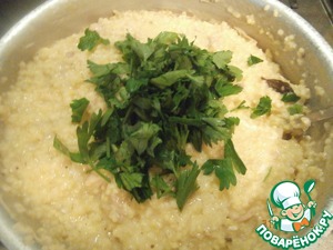 Добавляем петрушку, соль, перец по вкусу, перемешиваем. Накрываем крышкой, даем постоять минут 5.