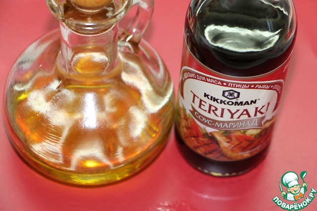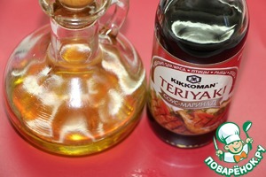 Смешать растительное, в идеале оливковое масло с соусом-маринадом Терияки, или просто с соевым соусом.