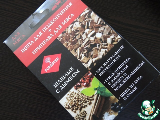 Дополнительно очень рекомендую на раскалённые угли посыпать влажную щепу для подкопчения мяса от компании Forester. Она придаёт мясу еще более насыщенный аромат гриля и лета!