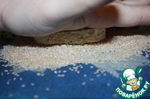 Рукой вдавить кунжут в сыр.