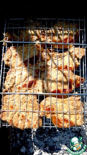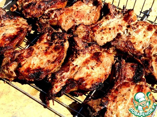 Устанавливаем решетку с мясом на мангал и жарим 10-15 минут.