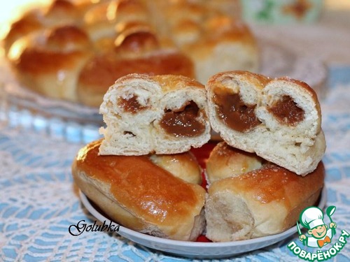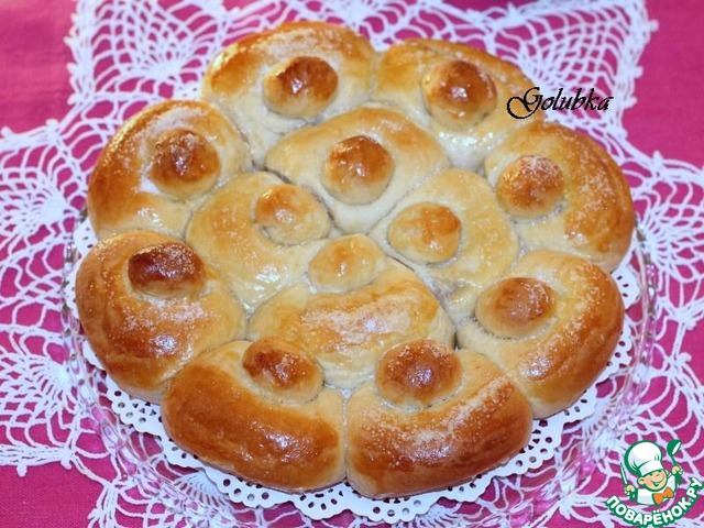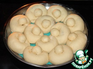 3. Затем формирую булочки,накрываю легкой тканью и ставлю противень в духовку. Включаю на 40 С . Через 20 минут тесто подымается и увеличивается в 2,5 раза, переключаю духовку на 190-200 С и до румяной корочки сверху.