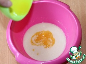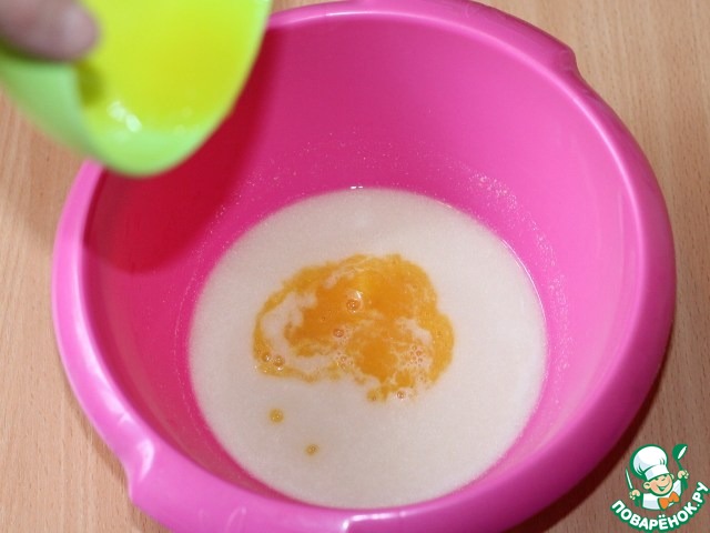 Добавить ванилин, взбитые с солью яичные желтки, -