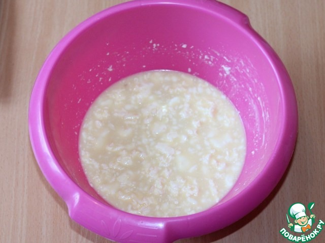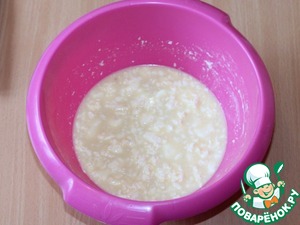 1. В большой миске в которой будет замешиваться тесто, в теплой сыворотке развести сухие дрожжи.