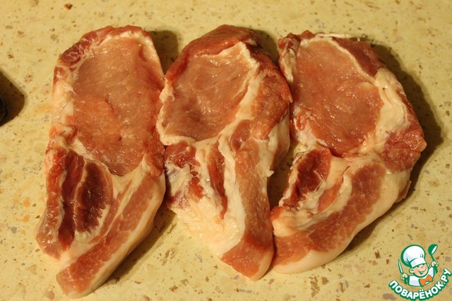 Мясо нарезать кусочками толщиной 1-1,5 см.