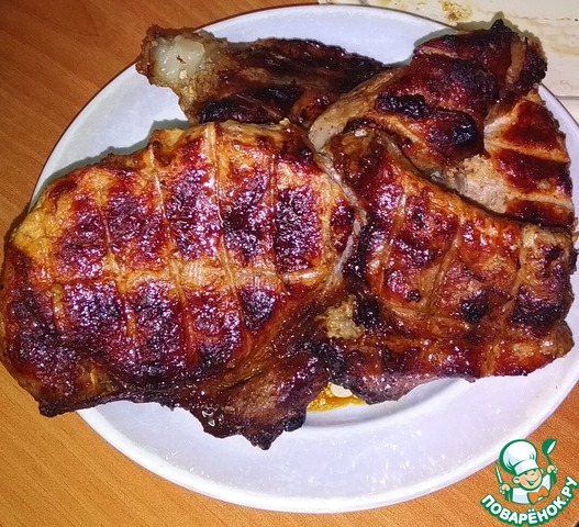Готовность мяса проверить ножом, проткнув его возле косточки, если сок прозрачный, значит мясо готово. Подавать сражу же, с любимым гарниром. Приятного аппетита!