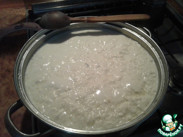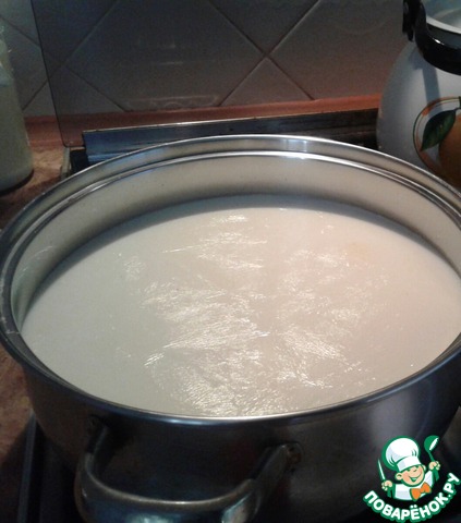 Отдельно хочу сказать о сыворотке. Сыворотку использую 3-4дневную. Обычно сначала готовлю панир http://www.povarenok .ru/recipes/show/126 417/, затем беру нужное количество сыворотки для адыгейского. Ставлю ее в тёплое место на 2-4 дня ( сыворотка должна стать кислой). -