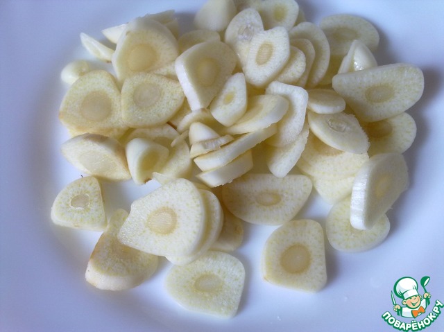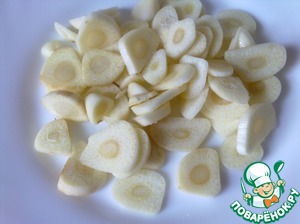 В сделанный ранее кармашек вкладываем чеснок и закрываем кармашек.