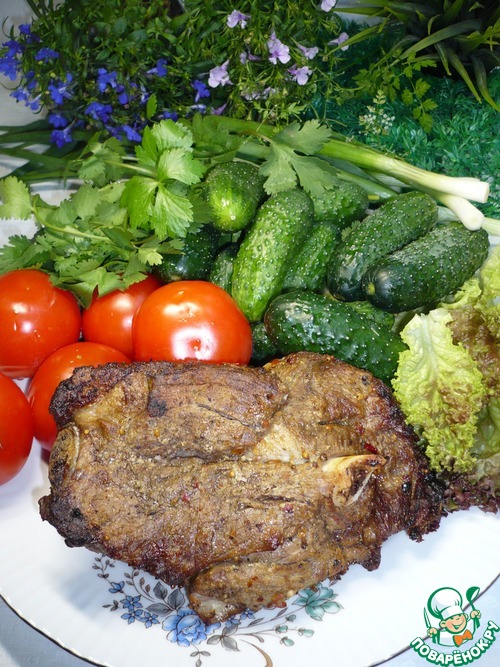 Мясо отправить в разогретую до 200 градусов духовку (температуру и время я даю ориентировочно, так как все зависит от вида и качества мяса, а также духовки у всех разные). Время приготовления 30-40 минут. Если у вас условия позволяют в любой момент раскочегарить мангал, то готовьте мясо на углях.