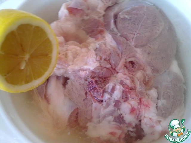 Мясо помыть и залить холодной водой, смешанной с лимонным соком. Это поможет устранить специфический запах баранины и придаст особый вкус мясу. На 1 стакан воды необходимо использовать 2 столовые ложки лимонного сока. Оставить в лимонной воде на полчаса. После промокнуть салфеткой.