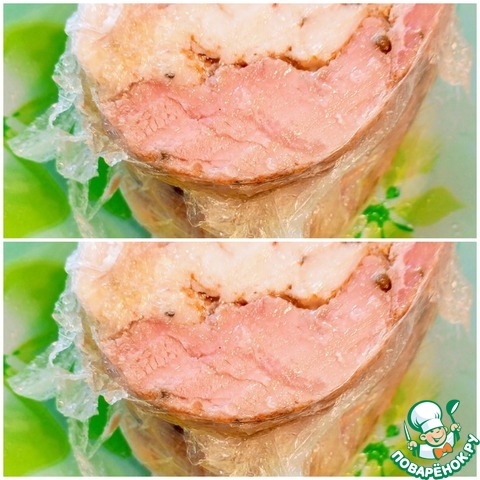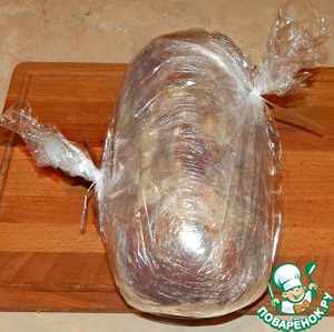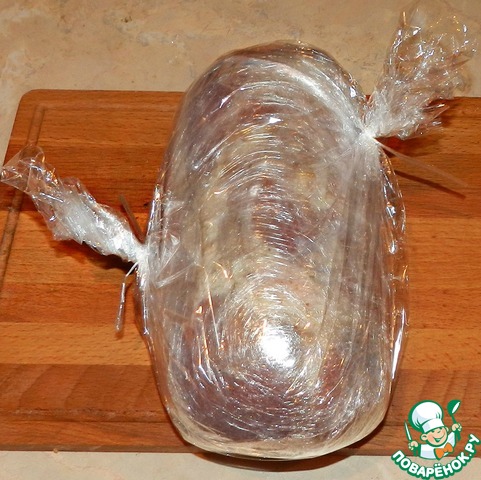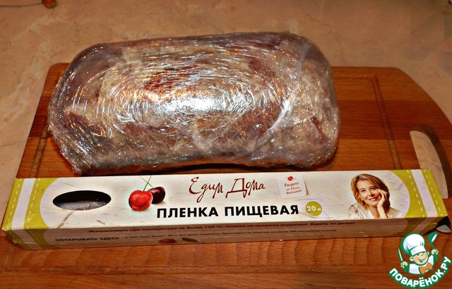 Не жалейте количество пленки, и старайтесь замотать мясо как можно туже. Если сомневаетесь, что с первого раза сможете туго укатать мясо, то предварительно перетяните его шпагатом и тогда все точно получится. -