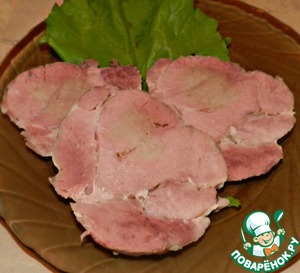 Далее достаем ветчину из мультиварки, не распаковывая остужаем под струей холодной воды.