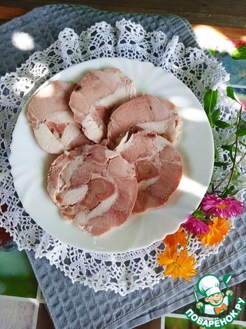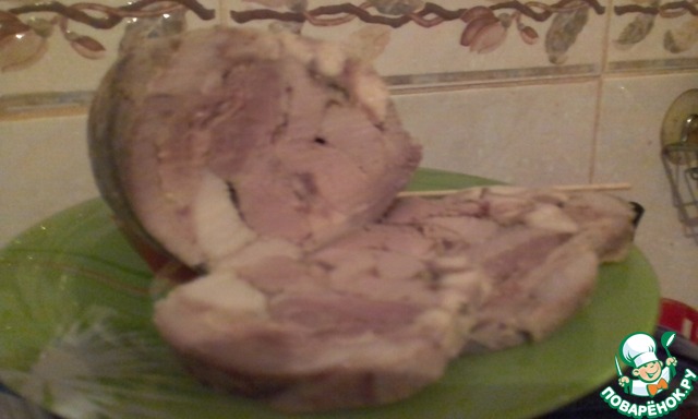 Ветчина из свинины и курицы - звучит не очень ново и привлекательно, но в результате не сложных телодвижений, получаем вполне замечательный результат. Вся прелесть этой ветчины - в ее простоте, на мой взгляд не стоит перегружать ее огромным количеством специй и добавок - она хороша именно в таком варианте!