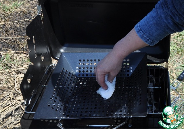 • Готовность углей проверяем по жару на расстоянии 15 см от углей. Рука не должна держать жар, но уже и не должно быть открытого огня.