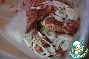 • Закрываем пакет и оставляем его мариноваться на 2-3 часа, периодически "жмакая" (как говорит моя свекровь). Так как до места пикника у нас всего 15 минут, то я готовлю мясо непосредственно перед отъездом.