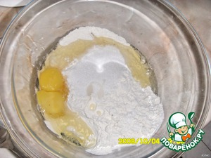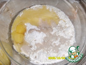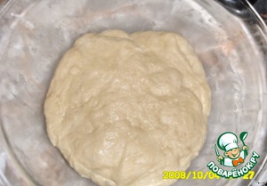 Замесить мягкое тесто. Накрыть пленкой и поставить в теплое место до увеличения в объеме. В процессе подъема осадить тесто несколько раз.