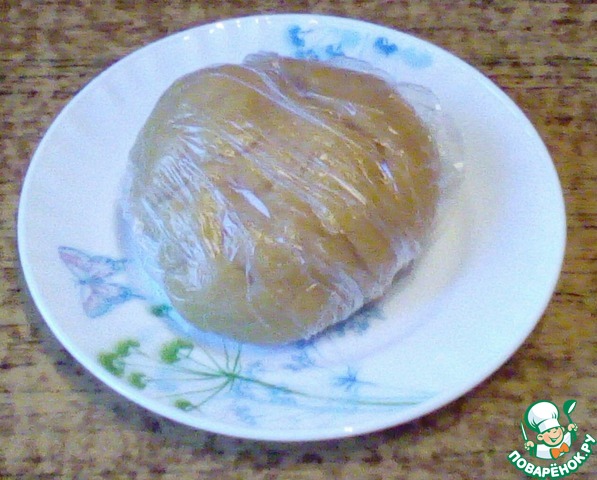 После этого тесто нужно завернуть в мешочек или пищевую плёнку и убрать в холодильник на 30 минут. -