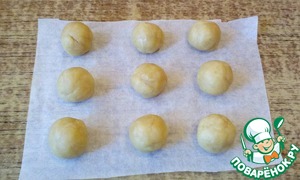 Разделить на 8-12 частей и скатать в шарики (у меня получилось 9 шариков размером примерно 5см в диаметре). -