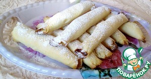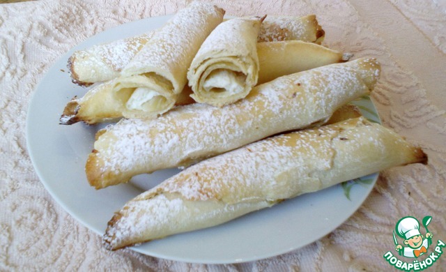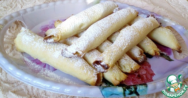 А теперь готовые трубочки посыпать сахарной пудрой и угощать всех родных и близких!!! )))