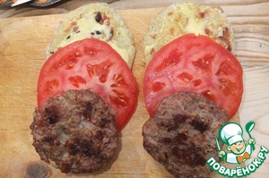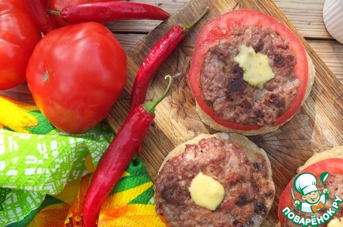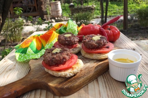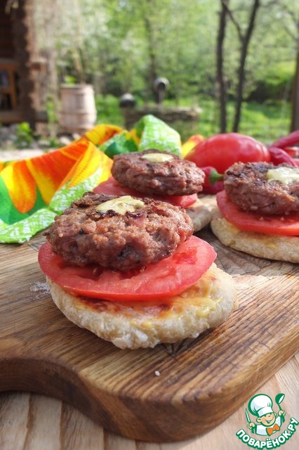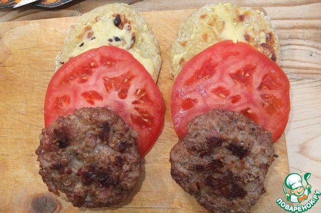Лепешки смазываем соусом, кладем кружок помидора или огурца или лист салата, а сверху сочную котлетку! И наслаждаемся!