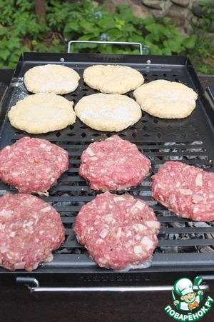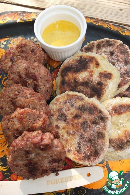 Вы думаете на мангале можно приготовить только шашлык? А вот и нет! Предлагаю вам приготовить сочные котлеты на пресных картофельных лепешках с пикантным острым соусом!